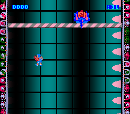 …sort of. To the game itself, the controls are a bit hit-and-miss. There are times where things handle pretty tightly, like in Assault and Joust, but to say that the guys in Powerball handle like they are drunk is an insult to the motor skills of alcoholics everywhere. Moving at incremental 45 degree angles is something that people in most of our family trees won’t do until our aunt misguidedly marries that robot in 2011, but it happens here. To be fair, the Gladiators don’t run around with any more skill, but the movements of all the guys are so random and hard to control that even when you “beat” Powerball, you definitely don’t feel like you earned it. It’s kind of like the lottery game of the same name in that way, except that I’ve seen convenience store clerks who could get up and down the Powerball pitch a lot better than the retarded contestants on this game. The two platform games as alluded to before, are Joust and the Human Cannonball. The I-swear-to-Lace hardest part of the Joust is jumping from platform to platform in your quest to fight the next Gladiator. I understand that this wasn’t a part of the real show and I can see why, as I’m sure there were plenty of unnecessary broken legs that occurred when they actually tried it in real life. The Human Cannonball functions the same way, except that you don’t have to jump to new platforms in between Gladiators. But the face plants that your guy frequently does are painful to everyone in the house, even those not in the same room. I’m pretty sure there are many laws of physics that are ignored in this event, but if anyone is sitting down with an NES GamePak to analyze the faith shown to Newton, they should be returned to their cages at NASA for further geek analysis.